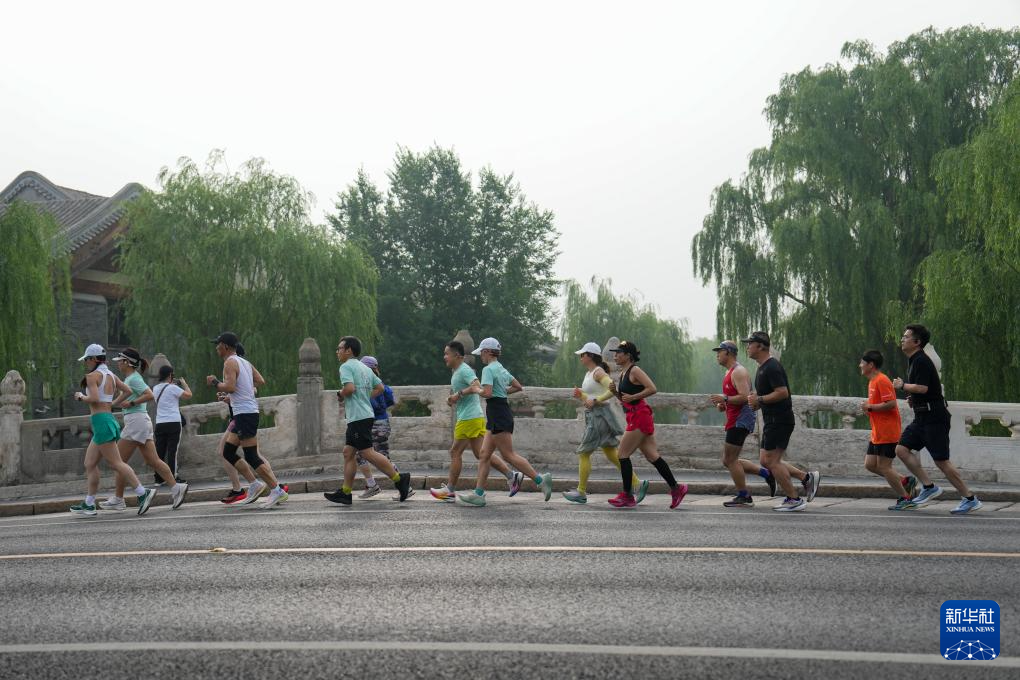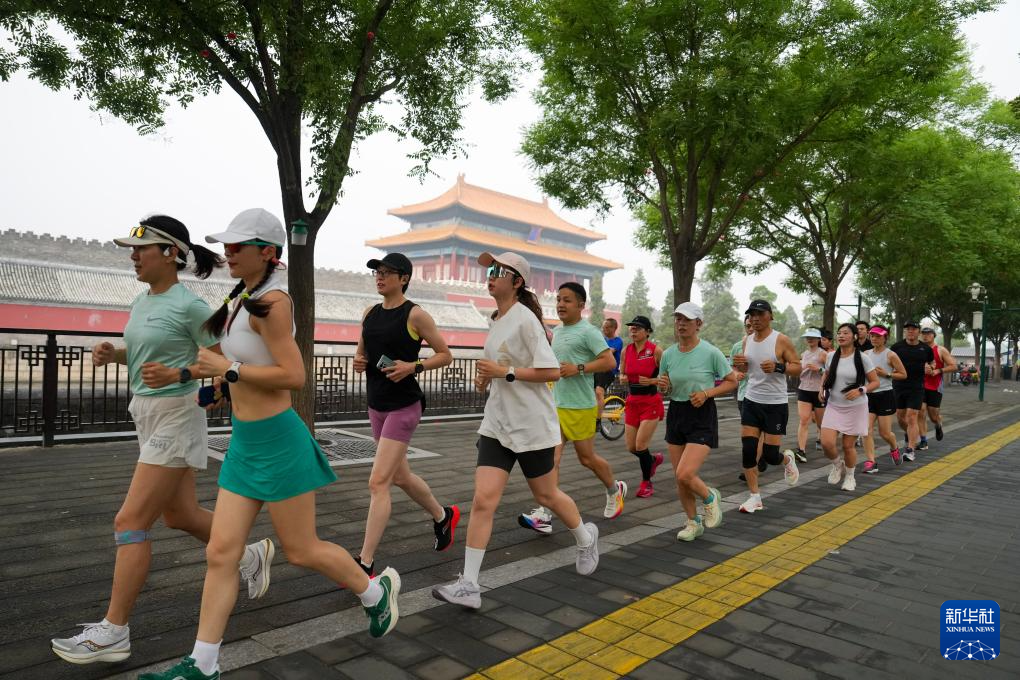 晨跑爱好者从故宫神武门附近跑过(6月22日摄)。