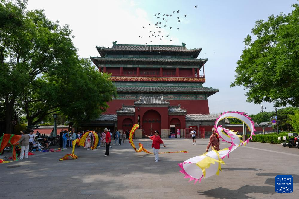 在北京钟鼓楼文化广场,不少市民在健身休闲(6月2日摄)。