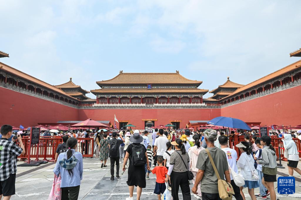 北京故宫午门外游客熙熙攘攘(7月16日摄)。