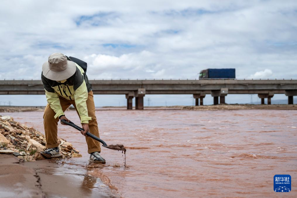7月26日,科考队员在楚玛尔河进行床沙采集工作。