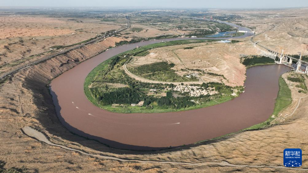 这是流经宁夏中卫市沙坡头区的黄河(7月26日摄,无人机照片)。