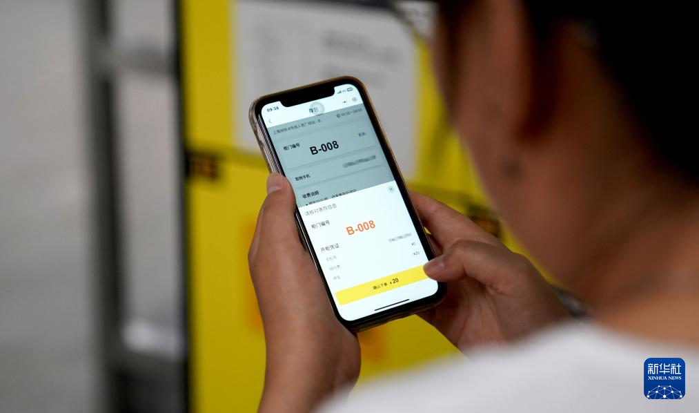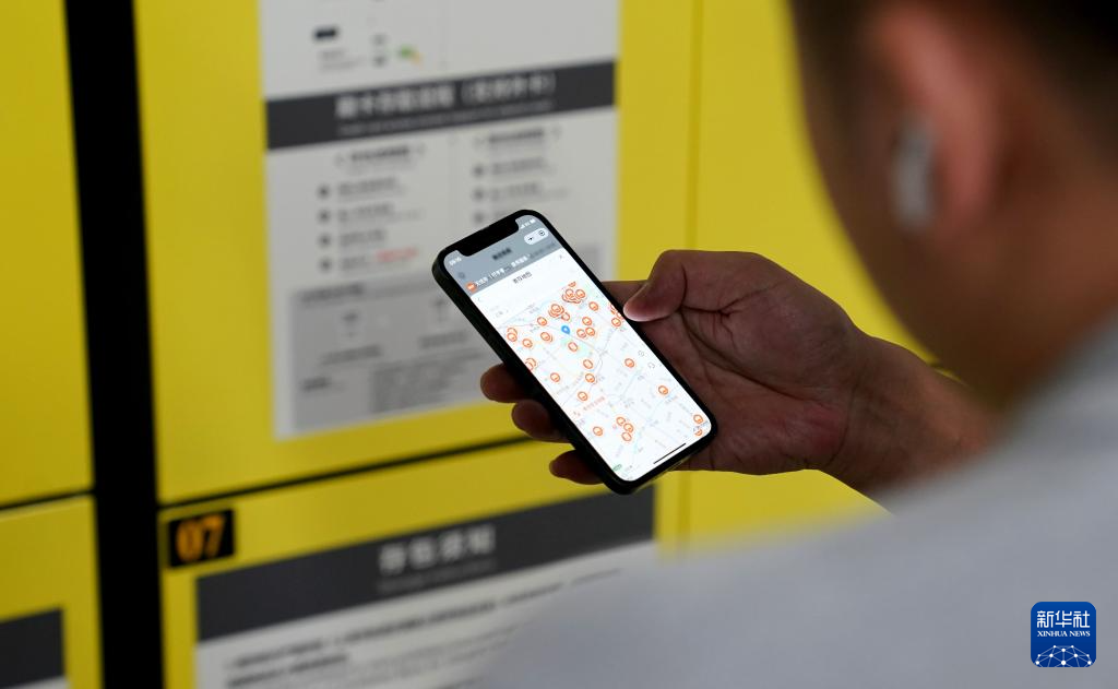 7月27日,乘客在上海市人民广场地铁站内用手机查看附近的行李寄存柜。