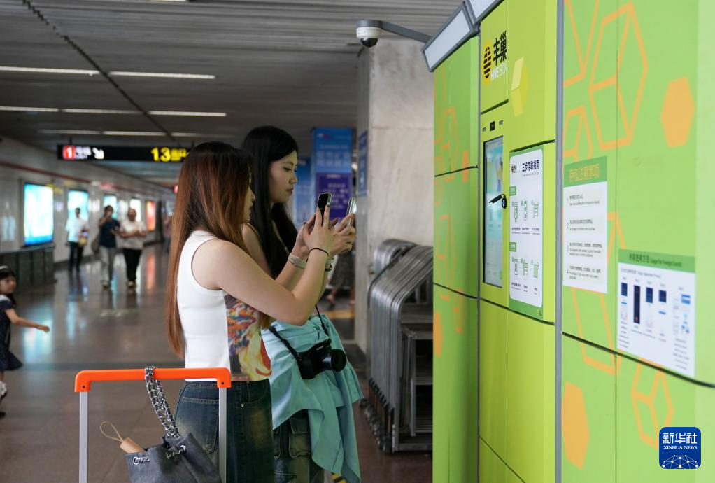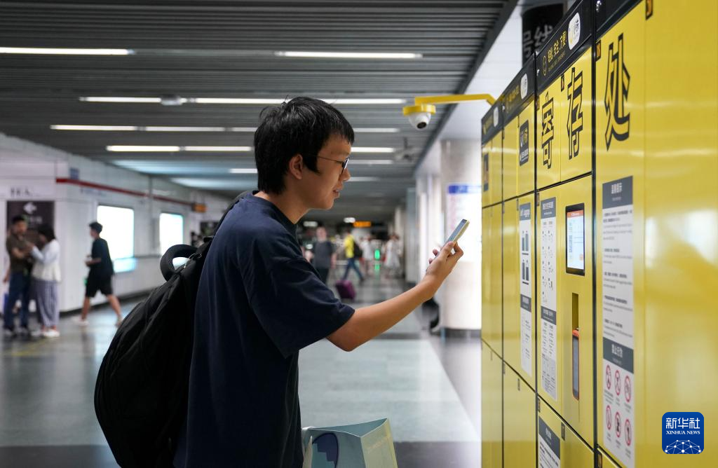 7月27日,乘客在上海市一大会址·黄陂南路地铁站内自助寄存行李。