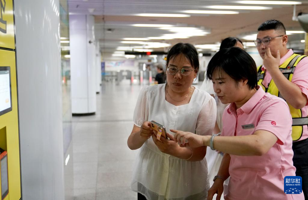 7月27日,上海市地铁站工作人员向乘客介绍如何进行行李寄存。