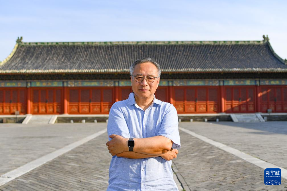 在先农坛神仓拍摄的吕舟(6月18日摄)。吕舟是清华大学建筑学院教授、清华大学国家遗产中心主任,作为北京中轴线申遗文本编制团队负责人,吕舟和团队致力于向世界阐释北京中轴线的遗产价值。2023年初,申遗文本正式提交联合国教科文组织世界遗产中心。在吕舟看来,北京中轴线的核心意义是从世界遗产的角度阐述了中华文明的延续性和统一性。北京中轴线凝结了中国文化对秩序的追求,展现了中国理想都城的营建格局,直至今日,仍深刻影响着北京城市的发展。