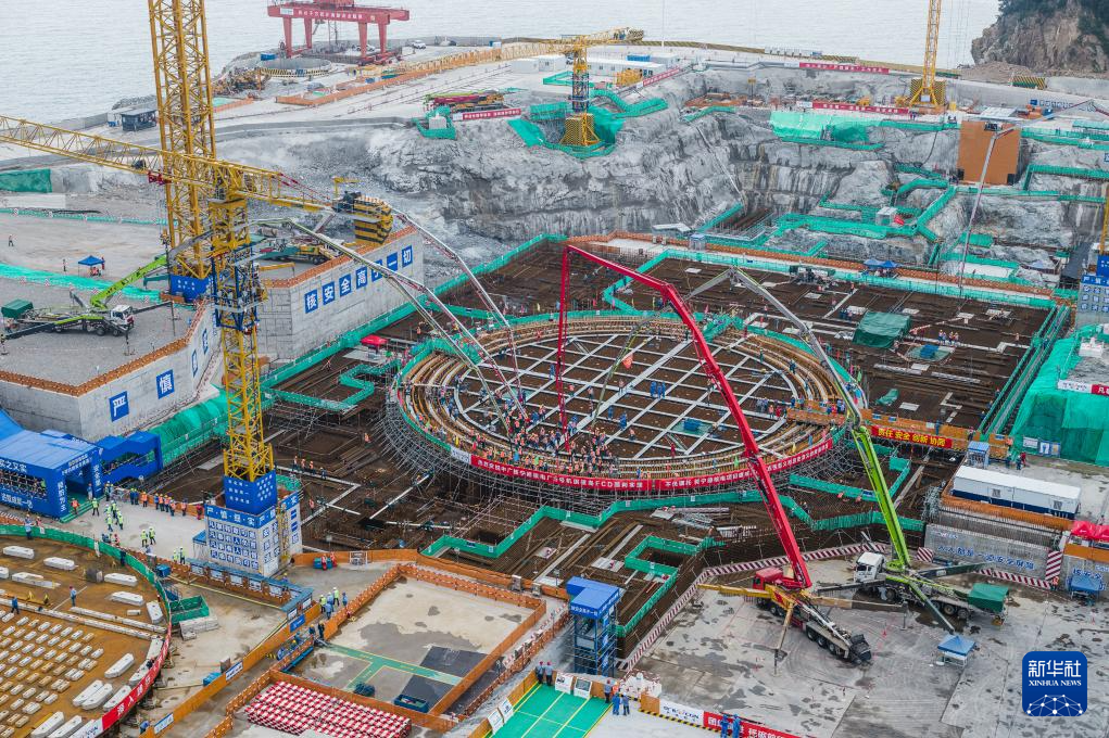 这是7月28日拍摄的中广核宁德核电站5号机组主体工程开工现场(无人机照片)。