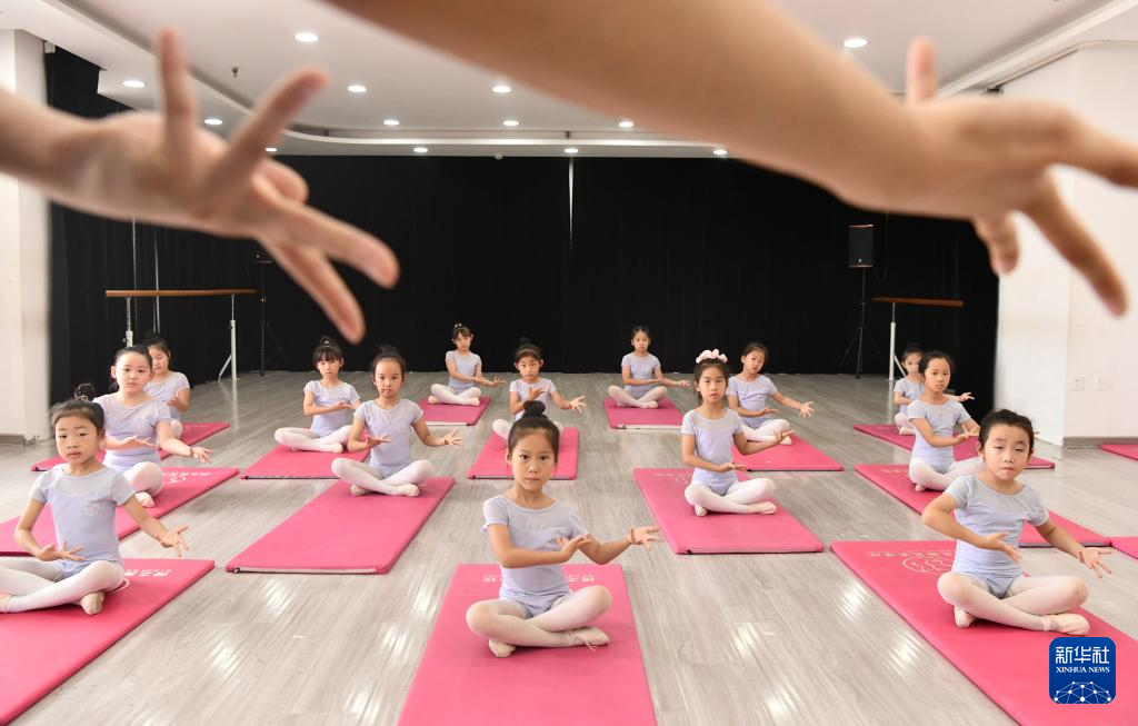 7月28日,在山东省临沂市郯城县郯城街道一家舞蹈培训机构,孩子们在练习舞蹈。