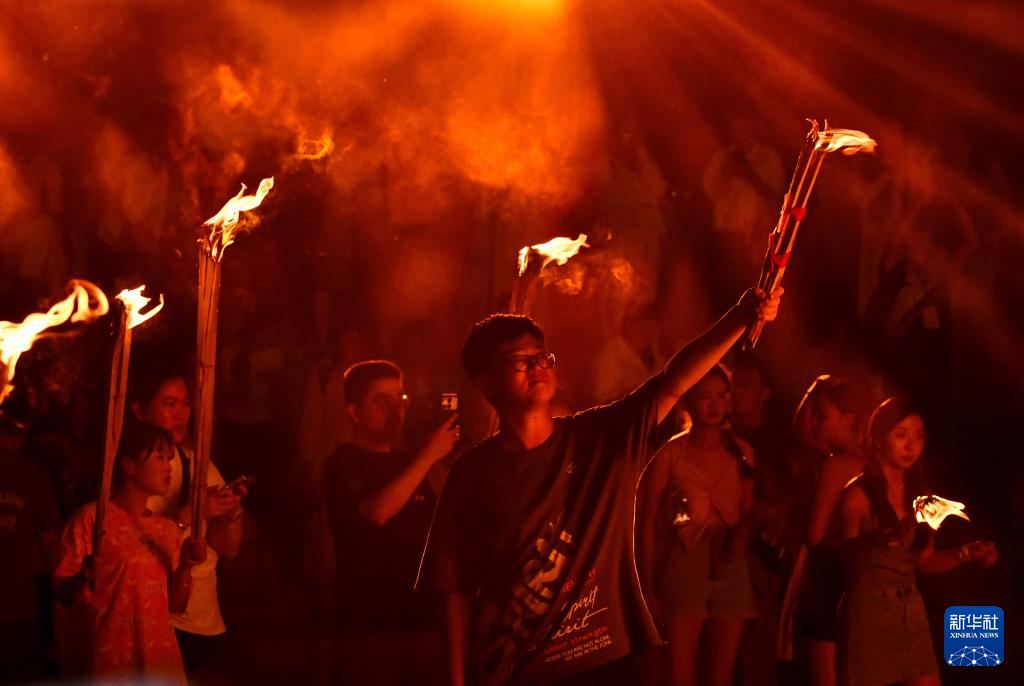 7月27日晚,“火火欢歌”中国·楚雄2024年彝族火把节在云南省楚雄彝族自治州楚雄市启幕。当地彝族群众与中外游客点燃火把,载歌载舞,共度佳节。