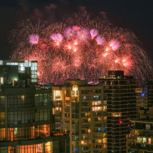 7月27日,在加拿大温哥华,烟花在英吉利湾的上空绽放。