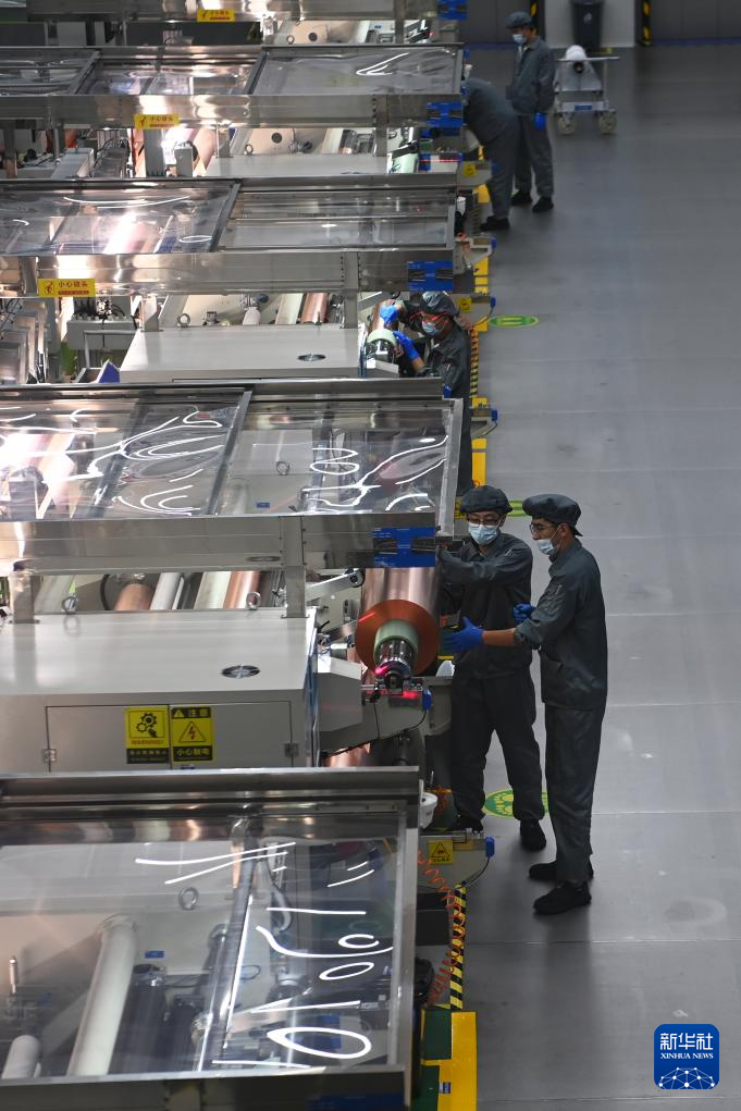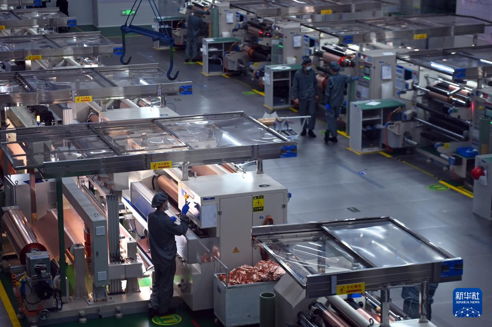 7月25日,在位于兰州新区的甘肃德福新材料有限公司,工人在铜箔生产线上作业。