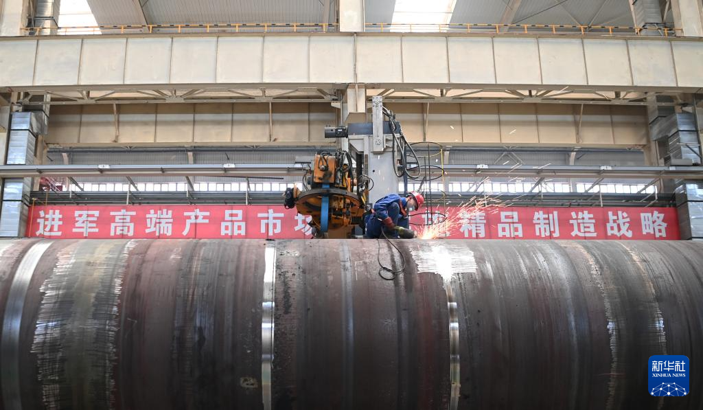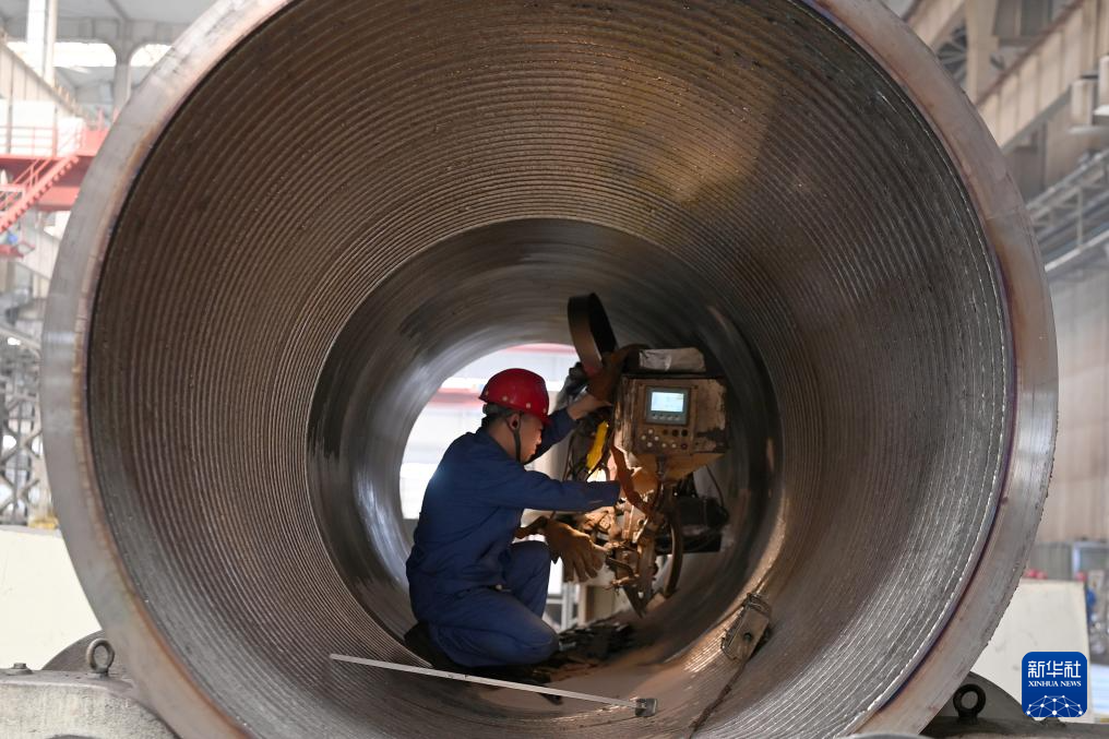 7月25日,在兰州新区兰石集团高端装备产业园,工人进行焊接作业。