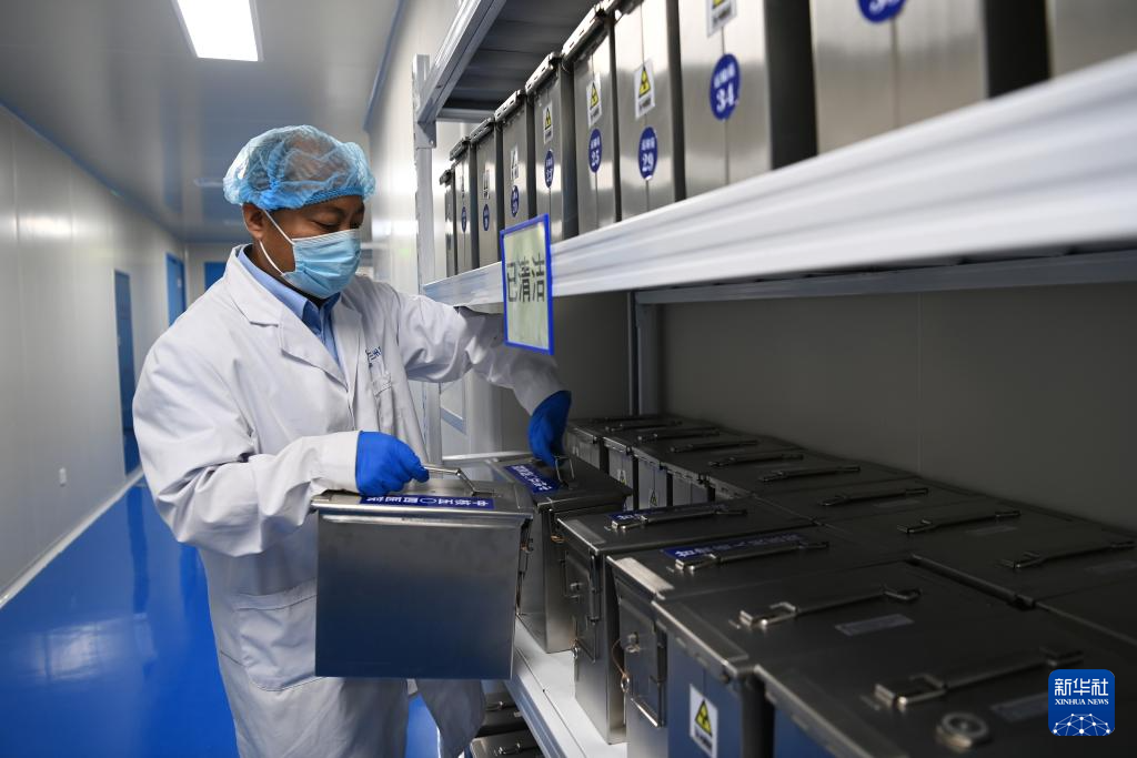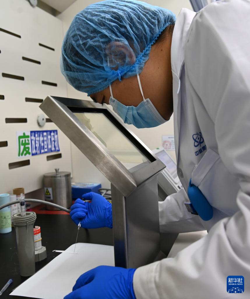 7月25日,在位于兰州新区的兰州原子高科医药有限公司,工作人员在准备药品提取的容器。