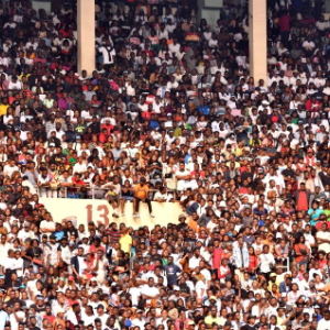7月27日,人们在刚果(金)首都金沙萨的烈士体育场观看演唱会。