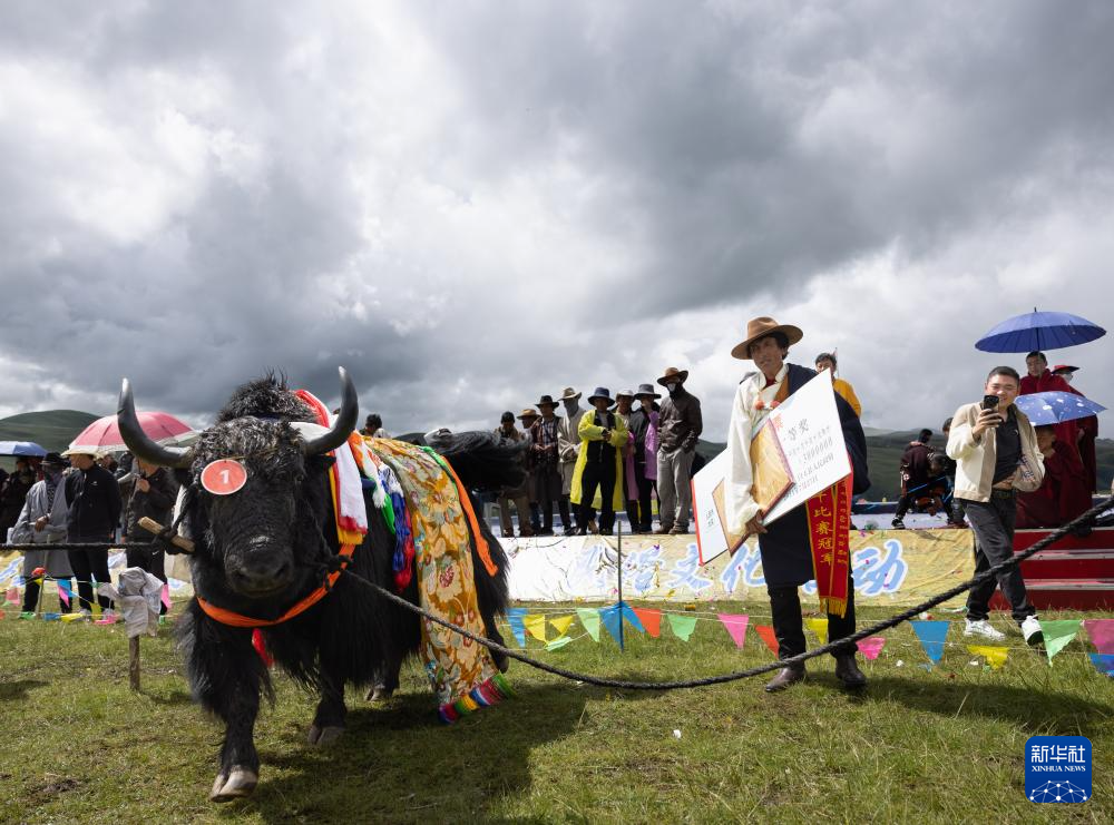 7月27日拍摄的在牦牛选美比赛中获得冠军的牦牛。