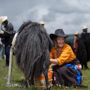 7月27日拍摄的参与牦牛挤奶比赛的妇女。