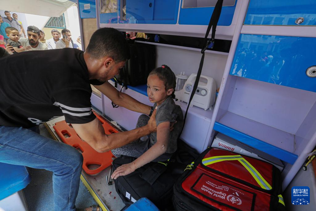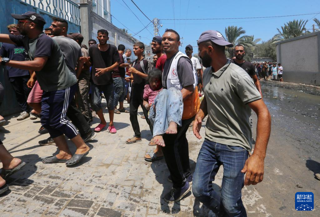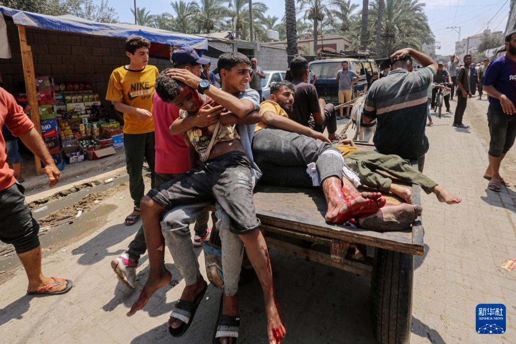 7月27日,在加沙地带中部城市代尔拜拉赫,一名男子运送受伤的儿童。