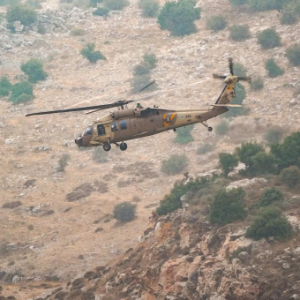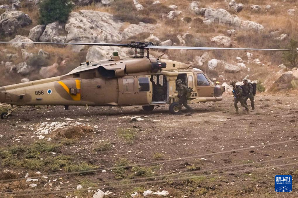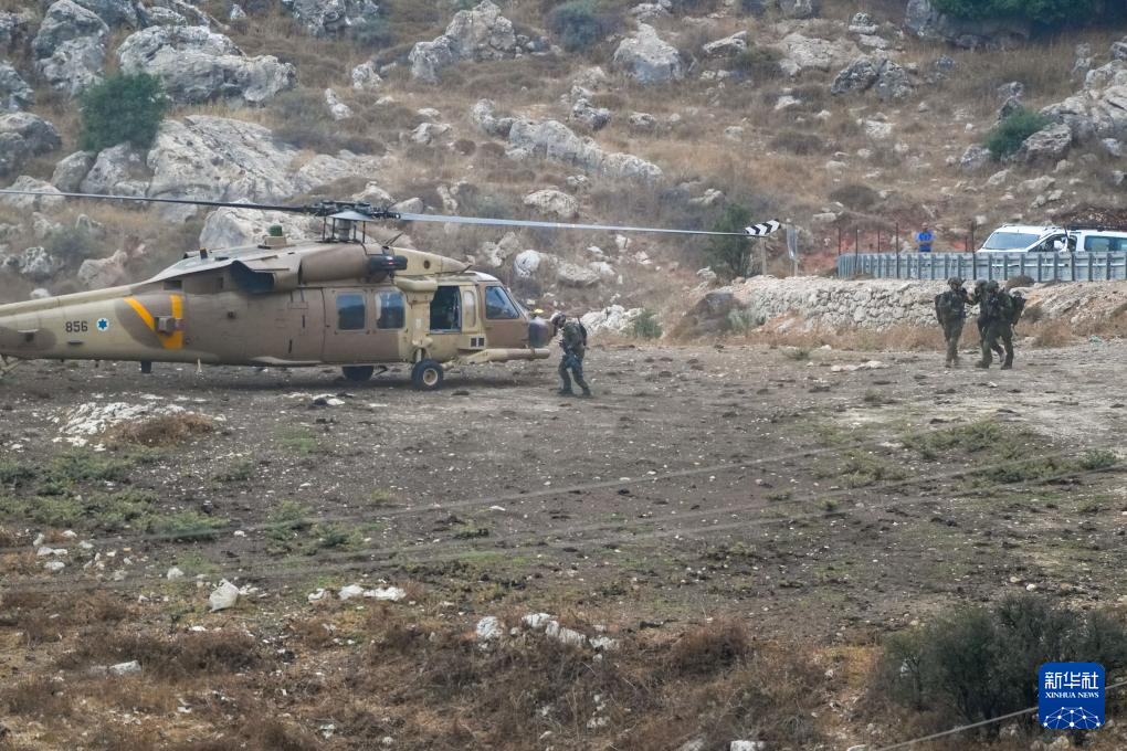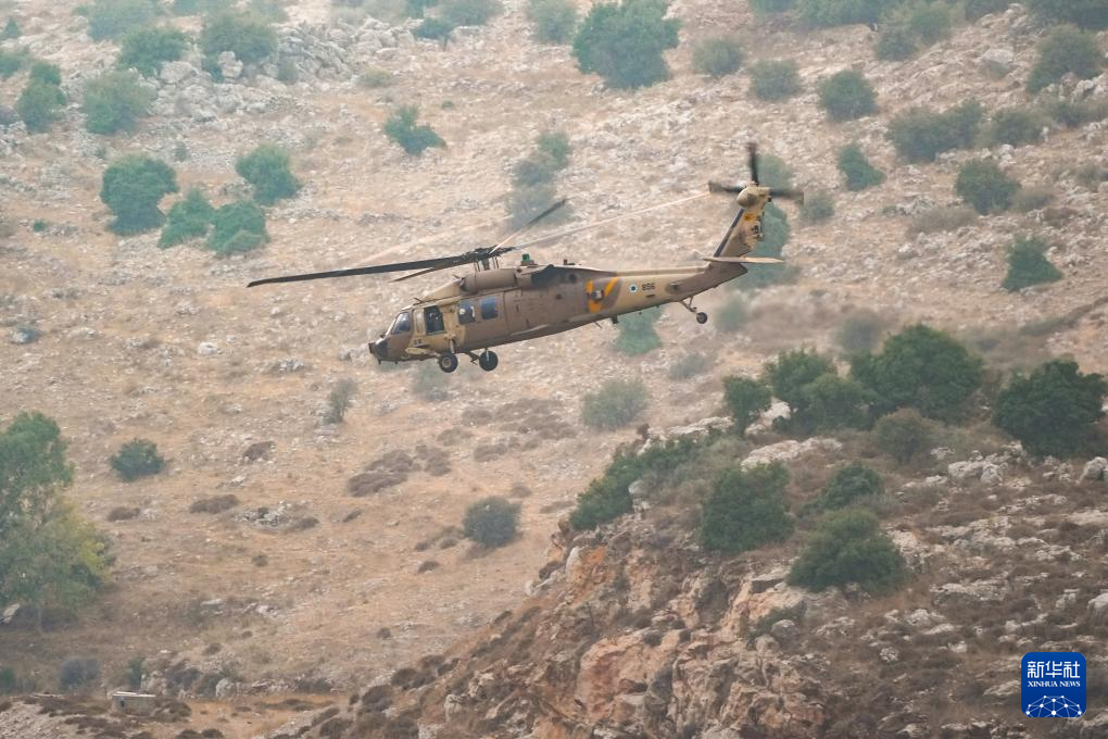 7月27日,在以色列占领的戈兰高地城镇迈季代勒舍姆斯,以军直升机出现在火箭弹袭击现场附近。