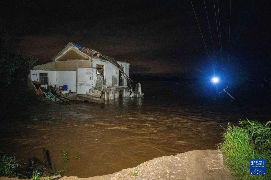 这是7月29日凌晨拍摄的湖南省湘潭县易俗河镇四新堤决口现场。