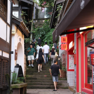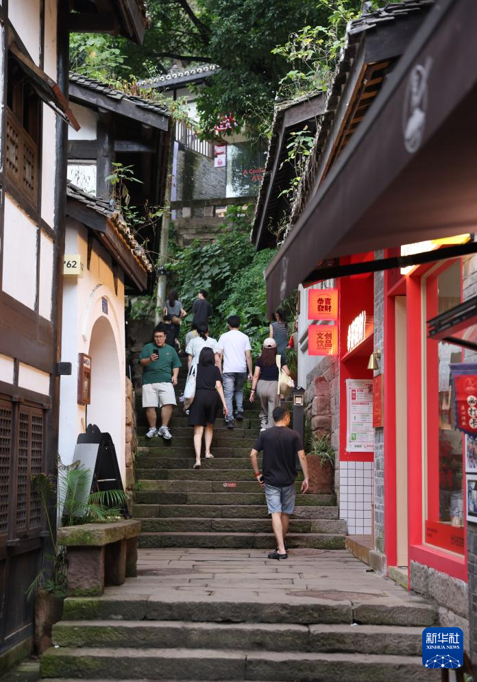 地处重庆市南岸区南滨路中段的龙门浩老街是重庆首批城市更新试点项目,老街区域内有两百多幢不同时期、不同形态的建筑,开埠文化、巴渝文化在此交融。近年来,当地秉承“变拆为留”理念,将自然、文化、艺术、数字等元素融入老街的更新改造中,并根据老街历史文化特点进行业态布局。