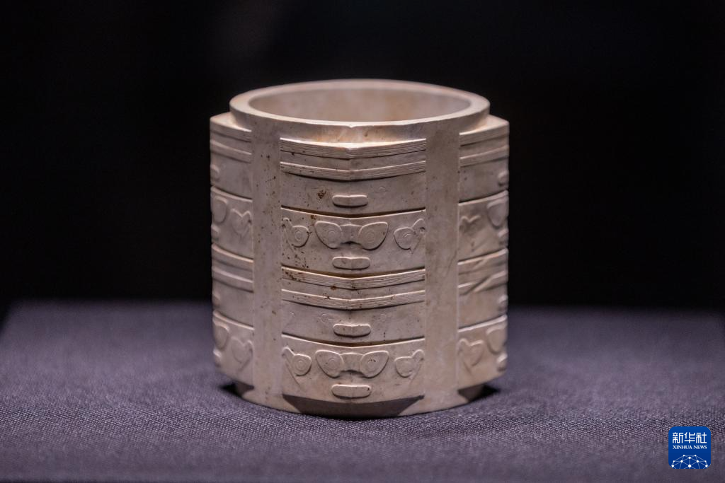 这是7月28日在重庆中国三峡博物馆举行的“玉出大江——长江流域史前玉器特展”上拍摄的玉琮。