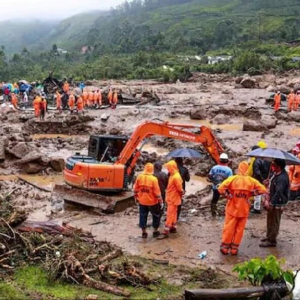 这张印度国家灾难响应部队提供的照片显示,7月30日,救援人员在印度南部喀拉拉邦的山体滑坡现场工作。