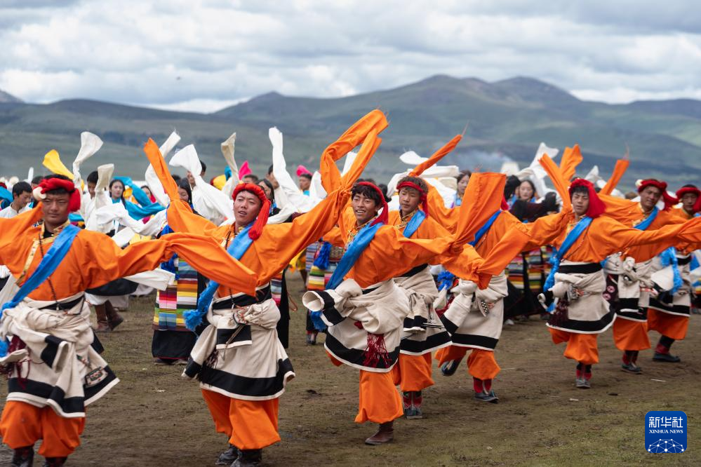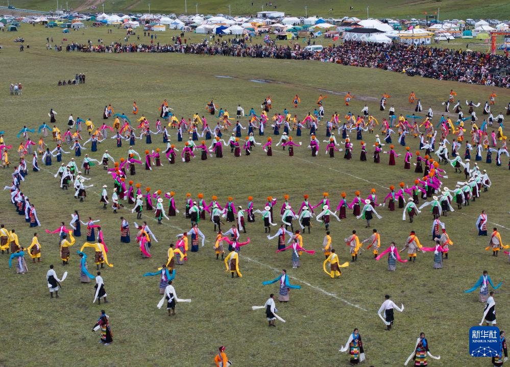 7月30日在理塘县多旺塘赛马场拍摄的锅庄表演。