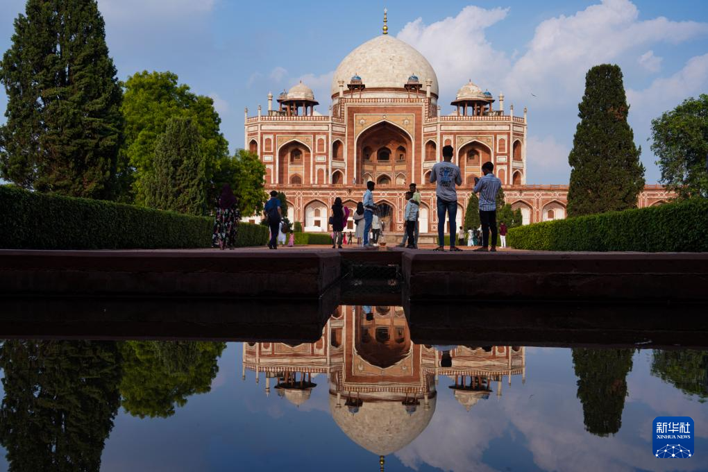 7月29日,在印度首都新德里,人们参观胡马雍陵。