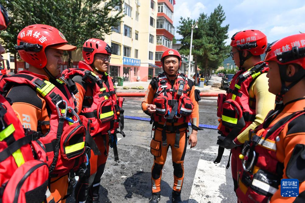 7月29日,在吉林省临江市,临江市消防救援大队世纪大街站副站长白云天(中)给队员布置任务。