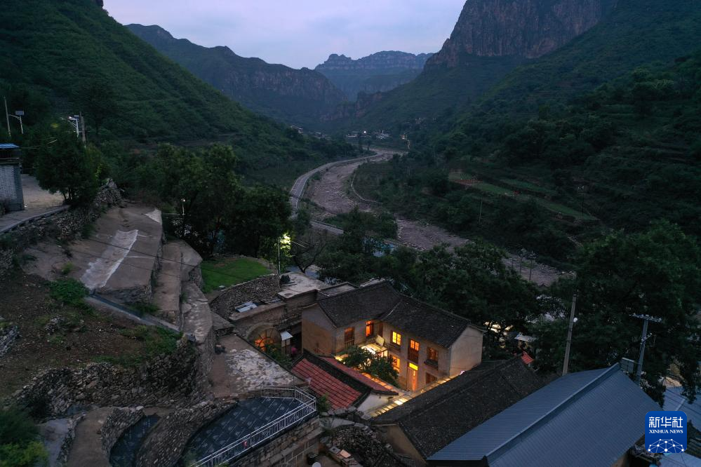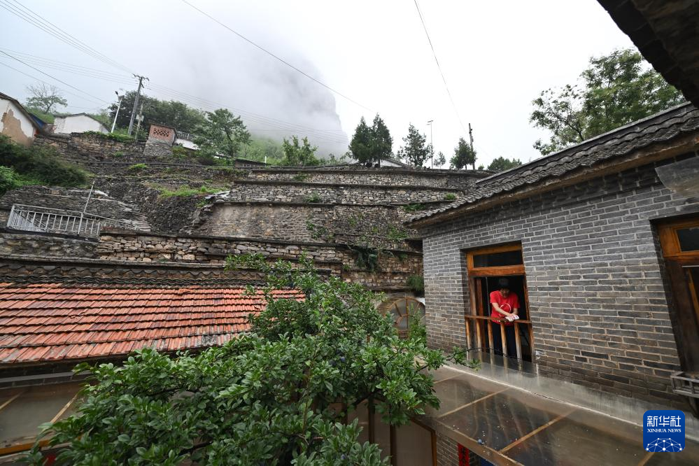 魏美玲将老房子改造而成的民宿,位于山西省平顺县榔树园村(无人机照片,7月24日摄)。
