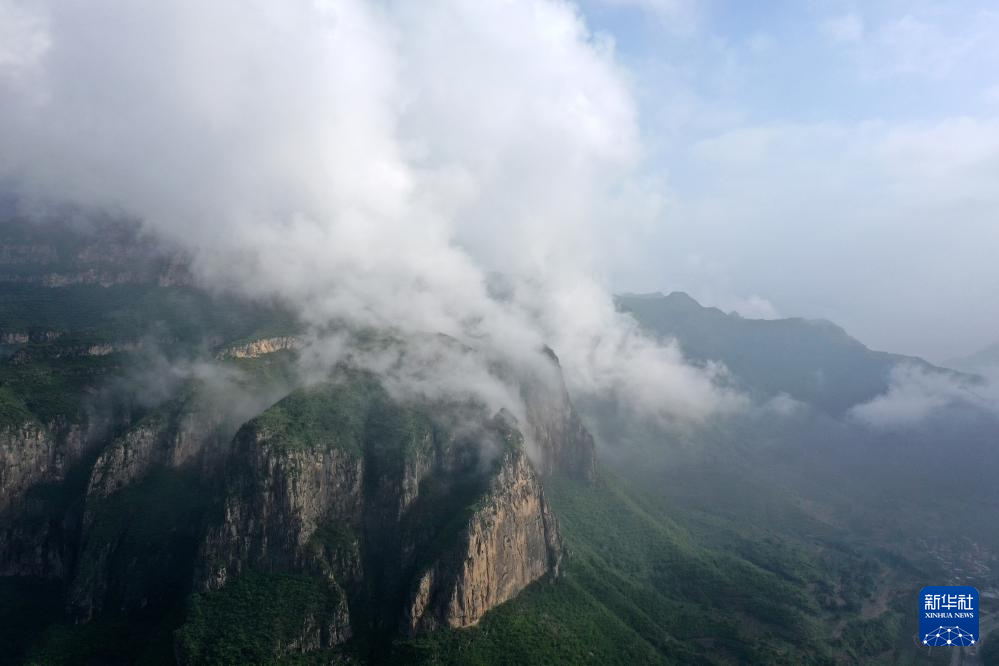 在山西省平顺县榔树园村拍摄的太行山风光(无人机照片,7月26日摄)。
