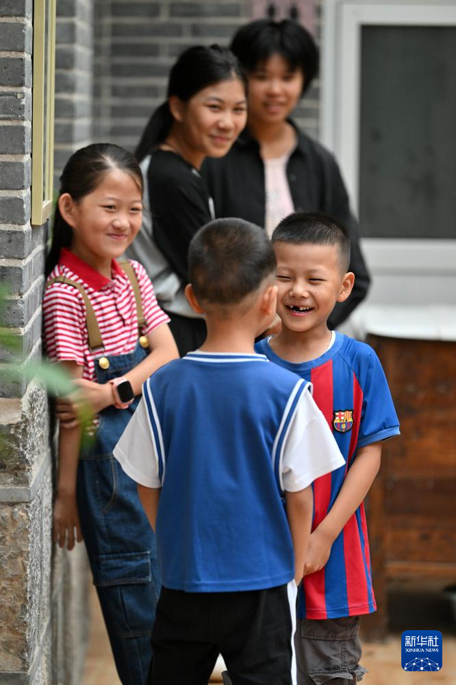 在山西省平顺县榔树园村,住在民宿的孩子们在玩游戏(7月25日摄)。