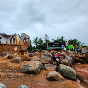 7月30日,救援人员在印度南部喀拉拉邦瓦亚纳德的山体滑坡现场工作。