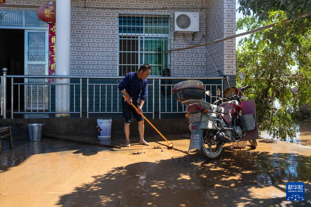 7月31日,在湖南省湘潭县河口镇华中村,村民在打扫房屋。