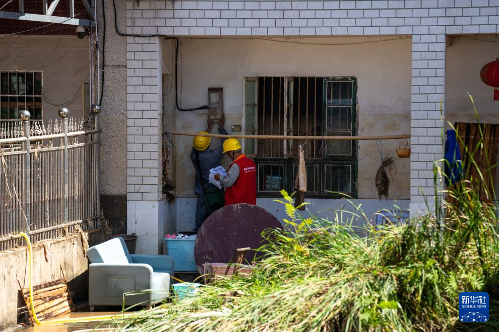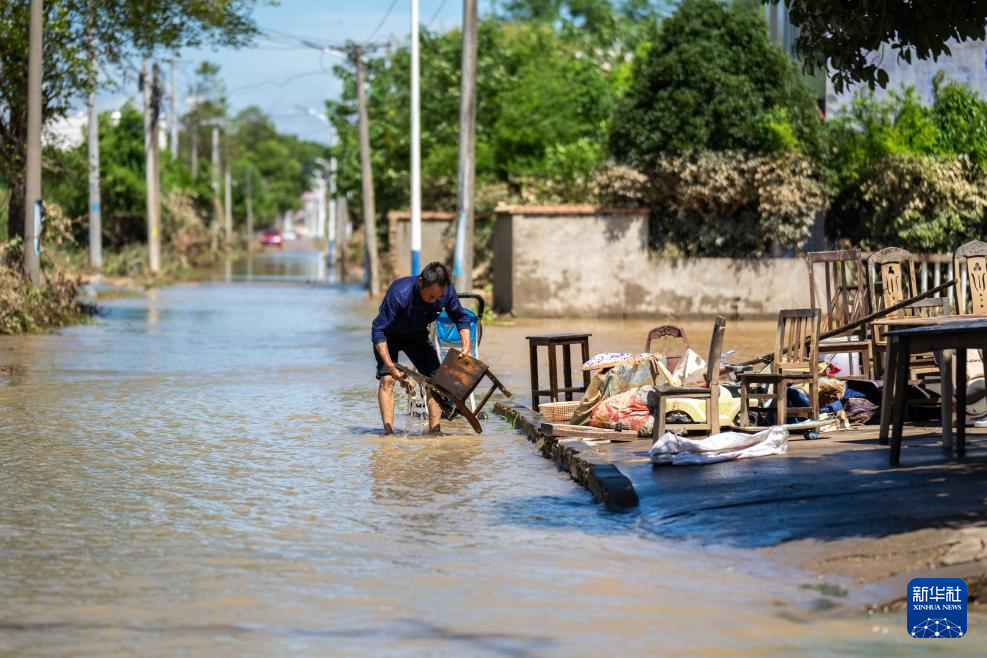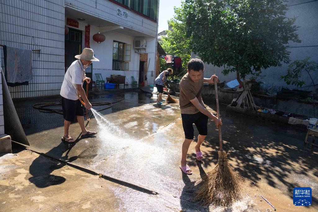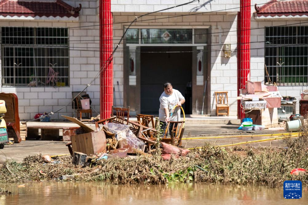 7月31日,在湖南省湘潭县河口镇华中村,村民在清洗家具。