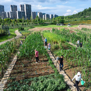 7月30日,游客在湖北省宜昌市点军区“江南有点田”共享农田区体验(无人机照片)。