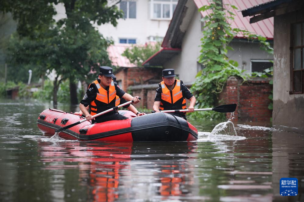 7月31日,太平湾边境派出所的民警在水淹区域巡查。