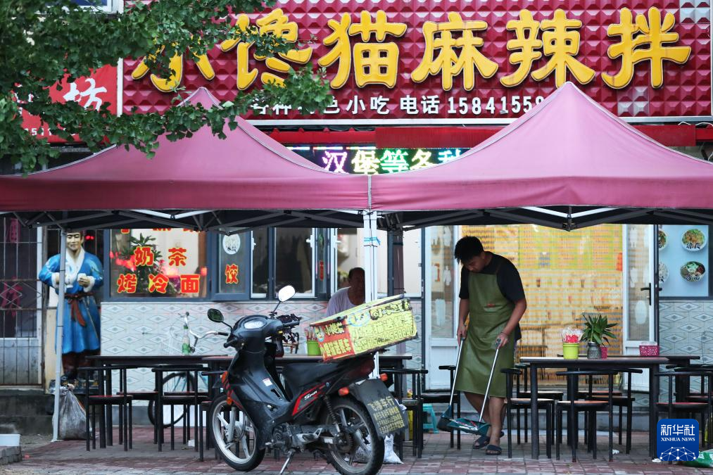 7月31日,在太平湾街道,商家在打扫店铺。