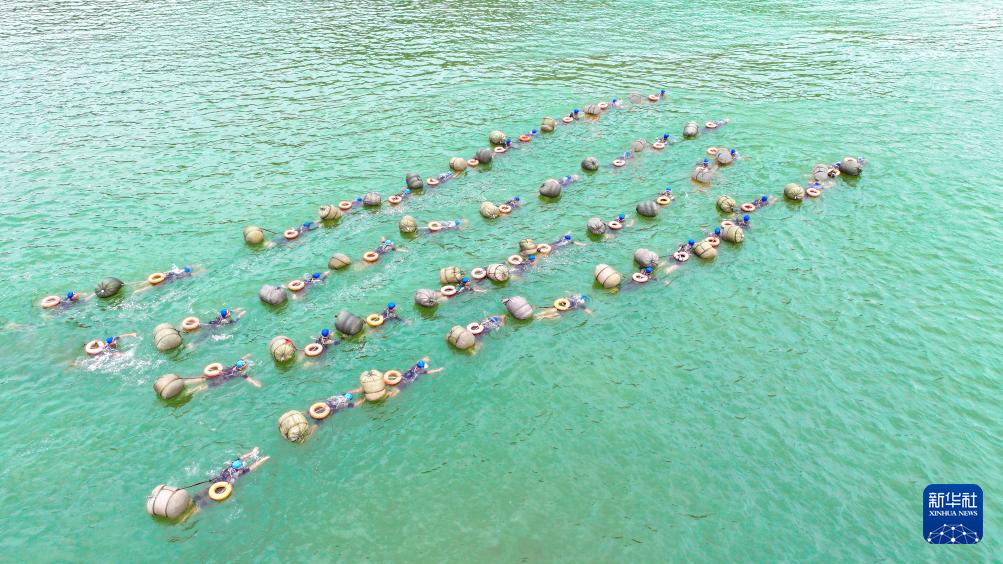 海军某部组织官兵在陌生海域展开赤臂长游训练(7月30日摄)。
