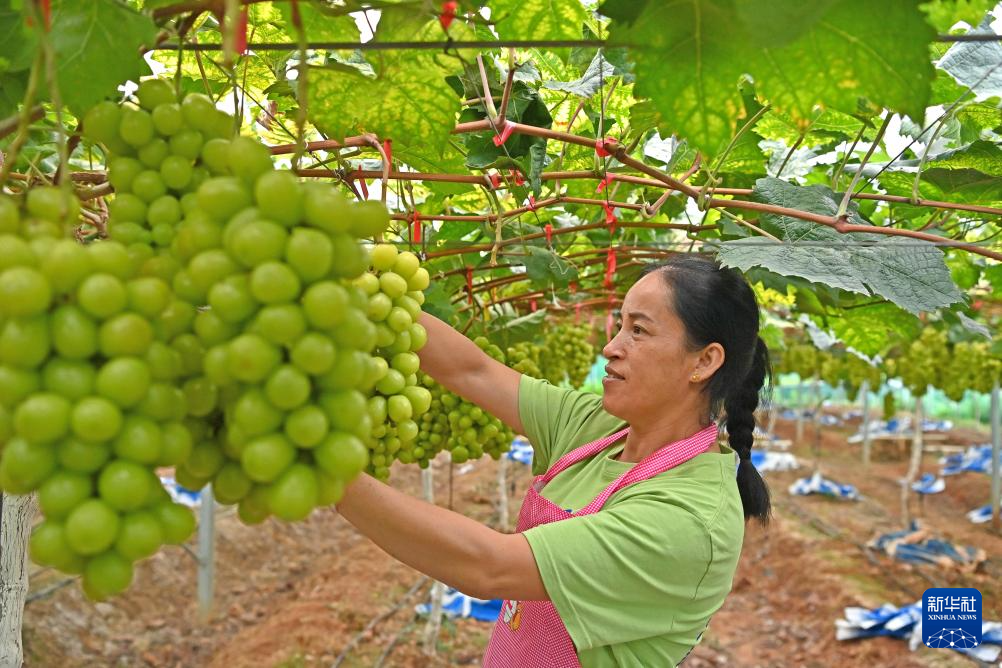 时下,广西田林县葡萄成熟上市,庄园里一派喜人的丰收景象。依托粤桂协作平台,田林县利周瑶族乡爱善村爱善现代农业庄园发展“阳光玫瑰”葡萄种植,2023年葡萄产值达300多万元。