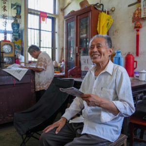 没有课时,马如松老人(右)和老伴黄楠喜欢在家里看报纸,了解社会新闻(7月31日摄)。
