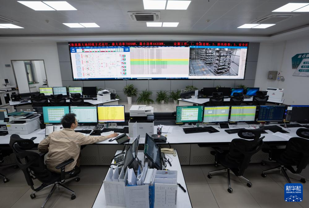 工作人员在布拖换流站主控室监盘(7月23日摄)。