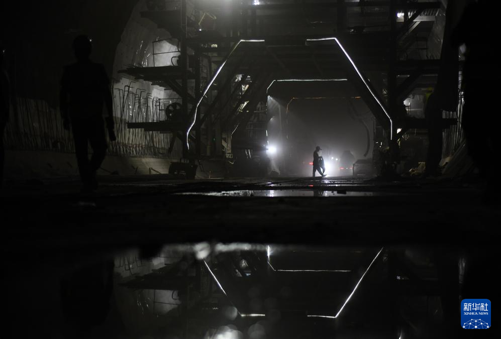 7月30日,工人在西延高铁太康隧道施工。