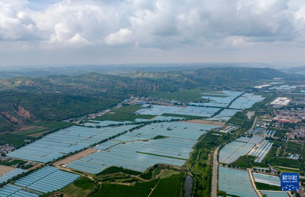 这是8月2日拍摄的宁夏固原市隆德县沙塘镇设施蔬菜高产高效示范基地(无人机照片)。