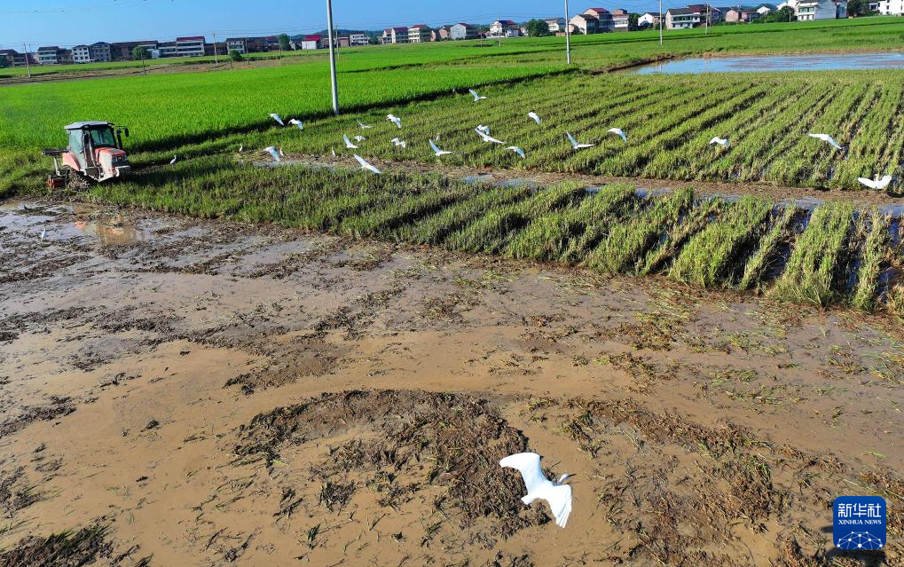 7月28日,湖南省衡东县境内的湘江一级支流洣水出现超警戒水位洪水,衡东县草市镇7个村(社区)被淹,大量农田被洪水浸泡。洪水退后,草市镇组织受灾群众积极开展生产自救,对受损农田进行翻耕,抢插补插晚稻。