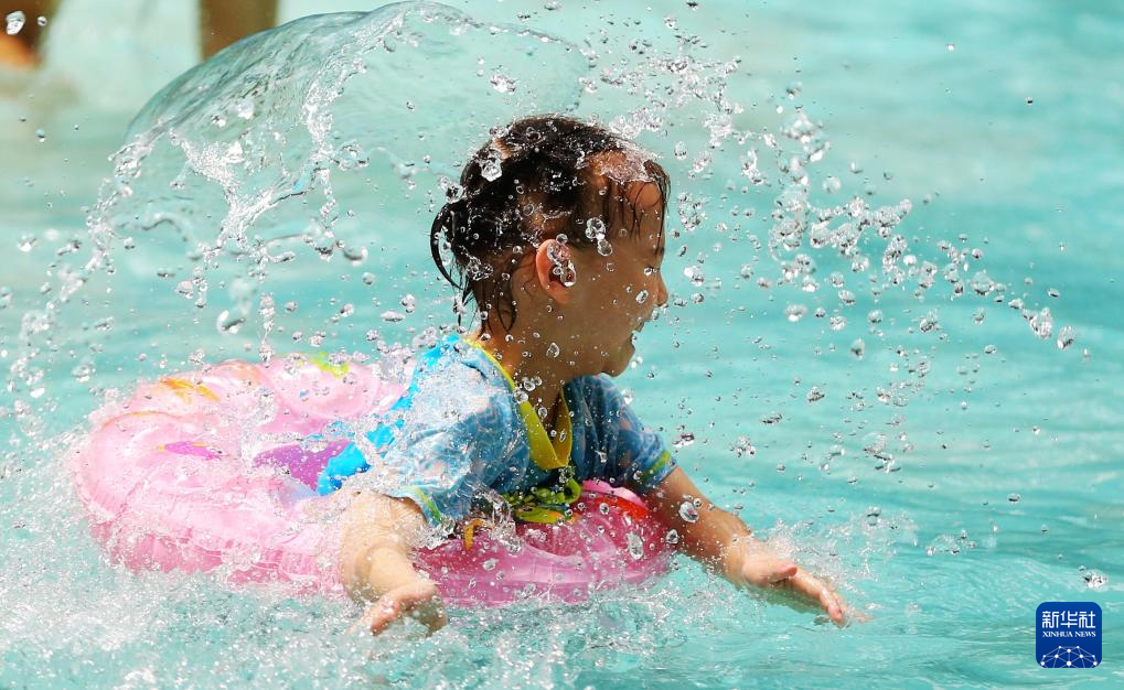 8月4日,小朋友在湖南省衡阳市衡阳县一水上乐园亲水消暑。