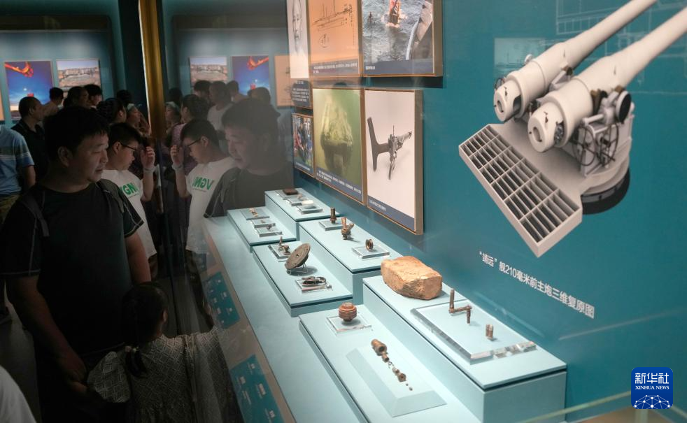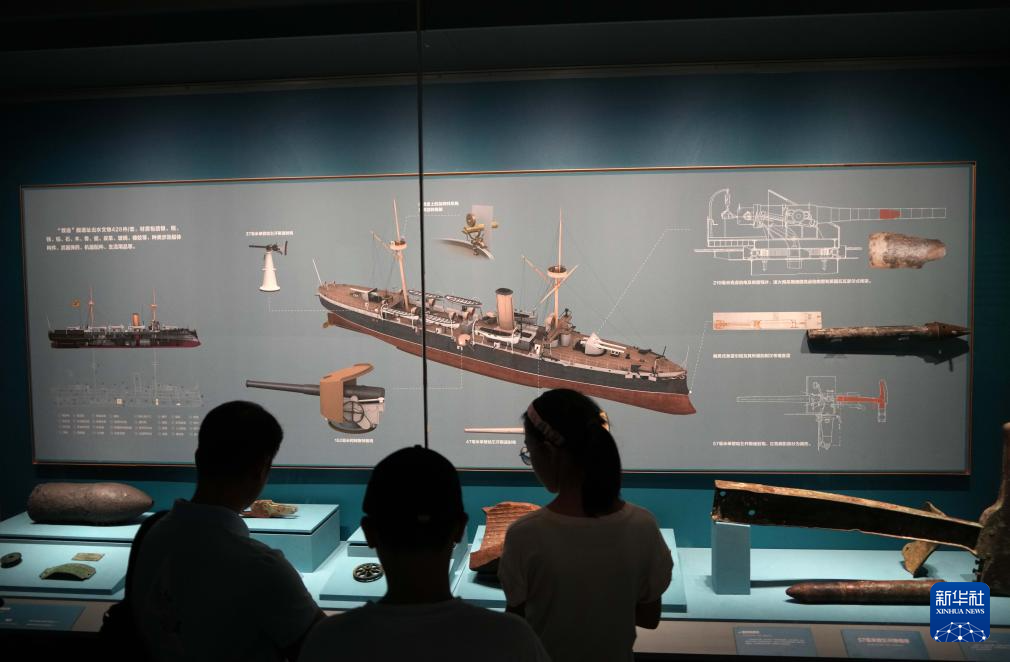 8月6日,参观者在甲午海战暨甲午沉舰水下考古展上参观。