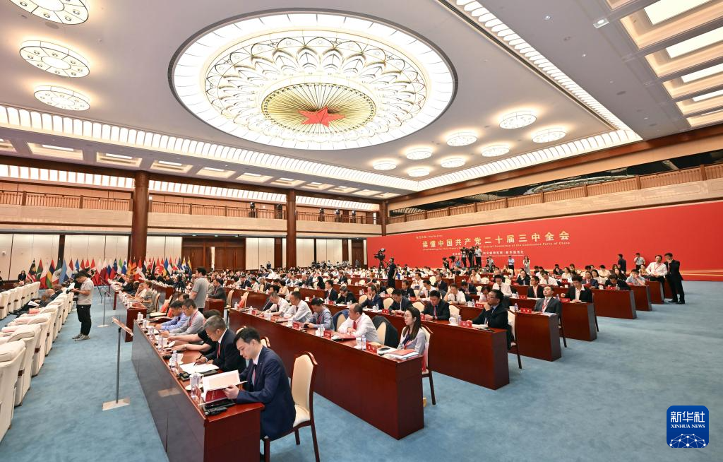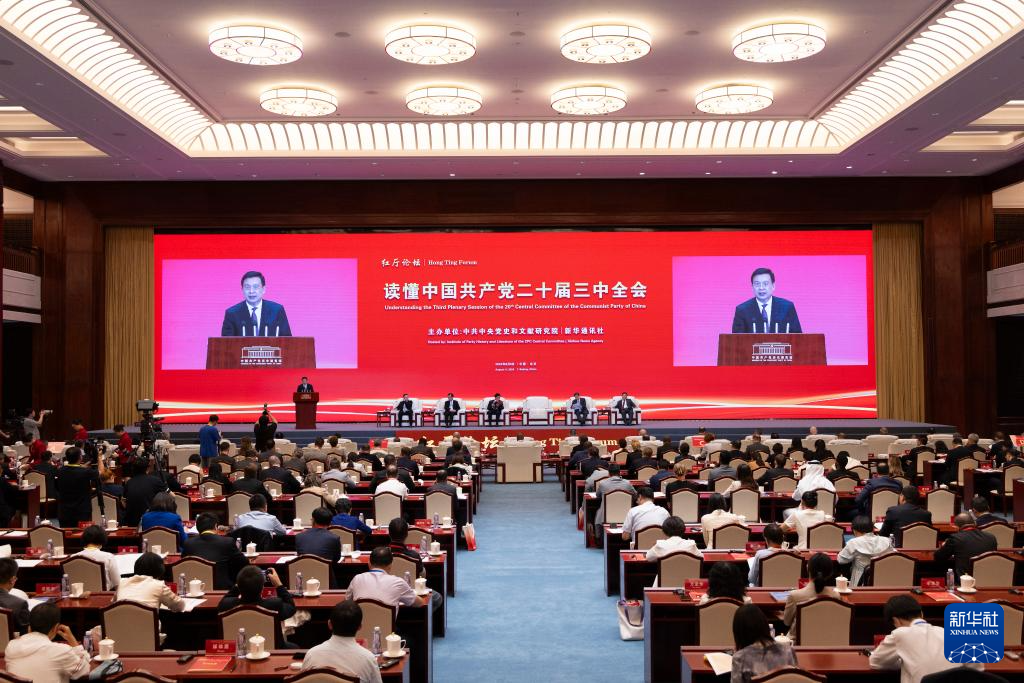 当日,“红厅论坛:读懂中国共产党二十届三中全会”主题研讨会在北京举行。来自60多个国家的200余名驻华使节、智库专家、媒体记者等开展交流研讨。本次主题研讨会由中共中央党史和文献研究院、新华通讯社联合主办。会上,《以全面深化改革推进中国式现代化的重大成就和世界贡献》智库报告以中英文面向全球发布。