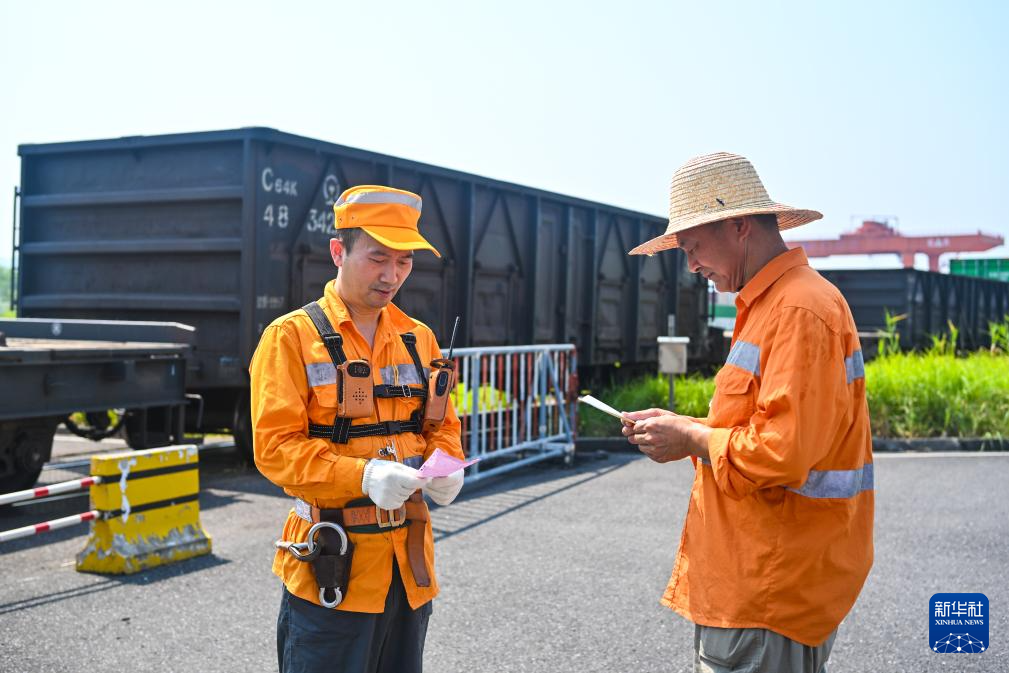 连日来,浙江省杭州市持续出现晴热高温天气。在中国铁路上海局集团有限公司萧山站,铁路调车员们坚守岗位,对列车进行分解、重组,将各类货物从萧山站发往世界各地。今年夏季以来,萧山站的铁路调车员们每天进行百余次调车作业、调动列车车辆一千余辆,有力保障铁路暑运畅通。