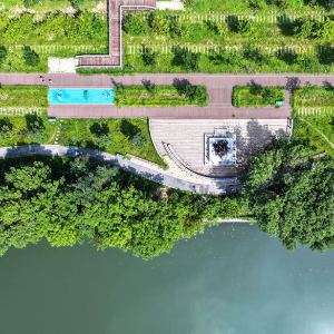 8月8日拍摄的天津市城市绿道公园(无人机照片)。