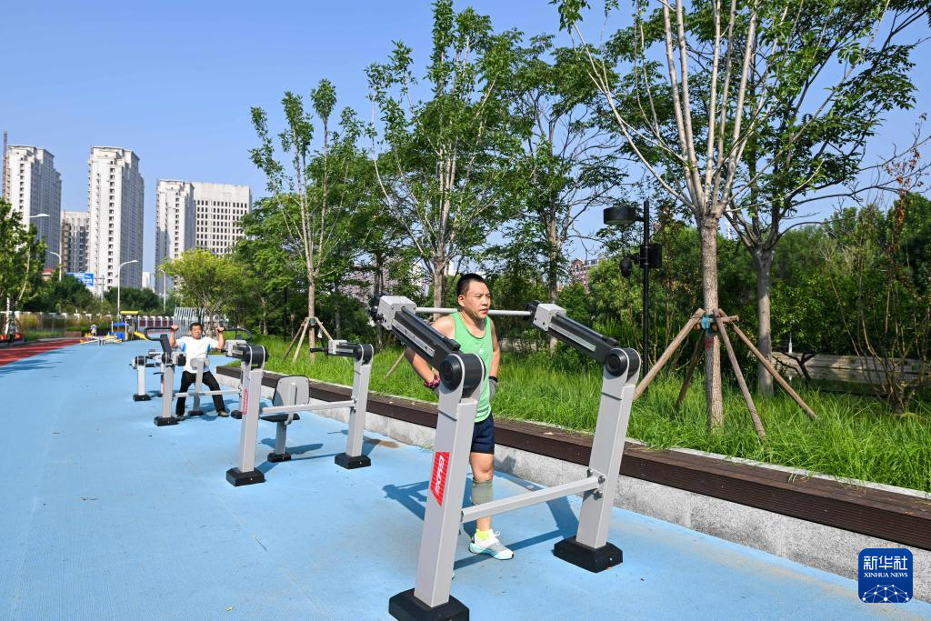 8月8日,市民在天津市城市绿道公园健身。